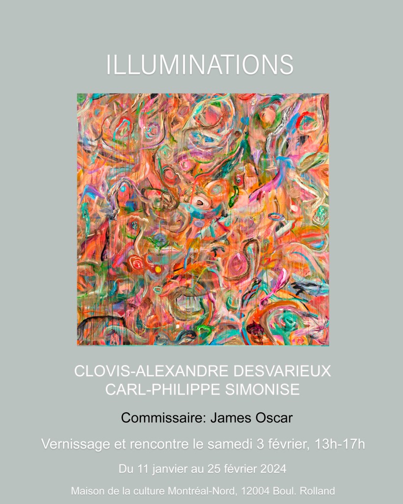 ILLUMINATIONS Du 11 janvier au 25 février 2024 à la Maison de la Culture Montréal-Nord Share this: Click to share on X (Opens in new window) X Click to share on Facebook (Opens in new window) Facebook Like Loading...
